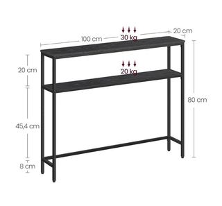 VASAGLE Mesa de Consola de 2 Niveles, Mesa Auxiliar con 2 Estantes, 20 x 100 x 80 cm, para Sala de Estar, Pasillo, Recibidor, Gris Carbón y Negro Tinta LNT131B22