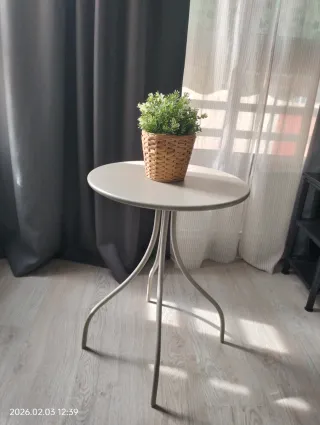 Mesa auxiliar redonda de Ikea, ideal para cualquier rincón. - Diseño moderno y funcional. - Patas metálicas estables. -color marrón grisáceo