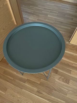 Mesa auxiliar verde. Dispongo de dos unidades. Precio por unidad 20€. Diámetro: 47 cm, Altura: 51 cm