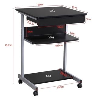 Mesa auxiliar versátil, ideal para colocar un ordenador o una impresora. Su diseño compacto la hace muy práctica. - Bandeja superior con capacidad de 30Kg. - Estante intermedio con capacidad de 20Kg. - Bandeja inferior con capacidad de 10Kg. - Ruedas para facilitar su movilidad.