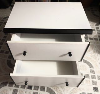 Mesita auxiliar totalmente nueva, con tiradores de aluminio en engro y patas de goma.