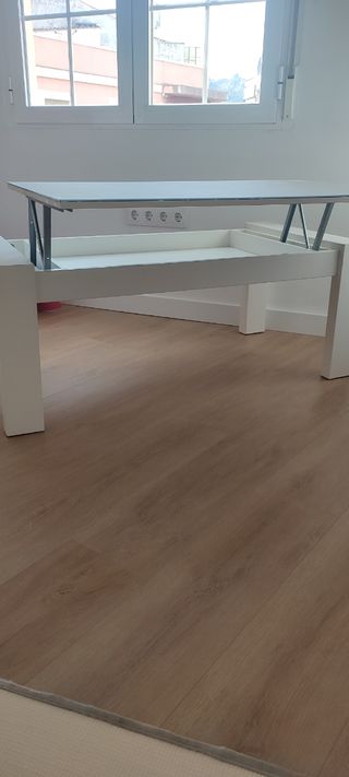 Mesa de centro , abatible de color blanco y plata, medidas 1'15x 60cm,en perfecto estado