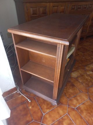 Mesa auxiliar de cocina, con cajón , dos estantes y botellero. Ideal para colocar microondas encima. Tiene un roce en el cajón, el resto muy bien