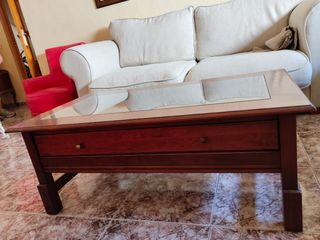 Preciosa mesa auxiliar de madera extensible, ideal para cualquier estancia. Se encuentra en muy buen estado. - Superficie de cristal. - Diseño elegante y clásico. - Estructura robusta y estable.