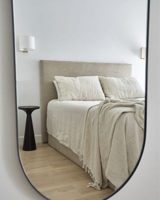 Elegante mesa auxiliar con un diseño único y moderno. Su acabado natural aporta calidez a cualquier espacio. - Fabricada en marmol de alta calidad. - Color beige natural. - Base con un diseño asimétrico.
