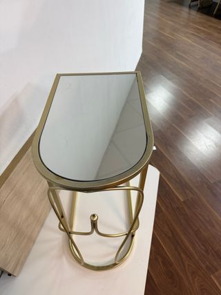 Mesa auxiliar dorada con tapa de espejo