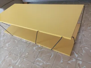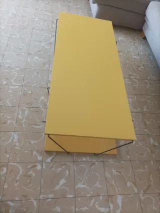 Mesa versátil, ideal como auxiliar o para actividades infantiles. Su diseño sencillo la hace práctica para cualquier espacio. Adecuada también para guarderías. Y salas de juegos. Hay otra igual, si interesa. - Superficie de color amarillo. - Fabricada en madera. - Medidas: 60x 90, altura 45