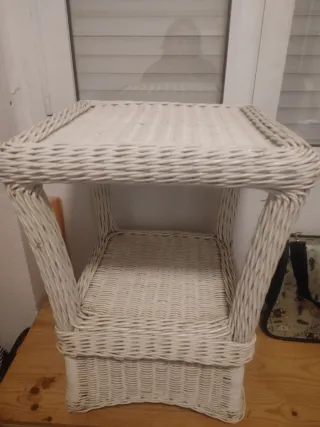 Mesa auxiliar de estilo natural, 64/47 cm perfecta para añadir un toque acogedor a tu hogar.y talbien se puede cambiar la colore sui quieres En perfecto estado - Fabricada en bambú y mimbre. - Diseño de dos niveles para mayor espacio. - Acabado en tonos beige y blanco.