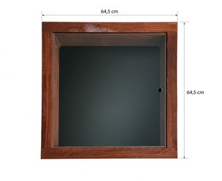 Mesa de centro o auxiliar con un diseño moderno y elegante. Sus dimensiones la hacen ideal para cualquier espacio. Tiene tapa de cristal para acceder al espacio expositor en el que caben objetos de hasta 10 cm de altura. - Tablero superior de cristal. - Estructura y patas de madera. - Medidas: 64.5 cm x 64.5 cm. - Altura: 40 cm.
