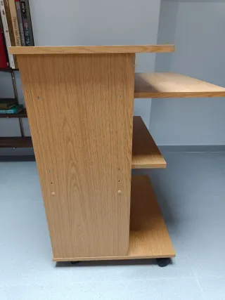 Mueble auxiliar de madera con dos estantes y ruedas para facilitar su movilidad. - Diseño moderno y funcional. - Color madera natural. - Ruedas para fácil desplazamiento.