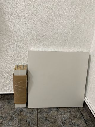 Mesa auxiliar baja, tinte blanco, de peso muy ligero. Tiene algunas imperfecciones visibles, pero esta como nueva.
