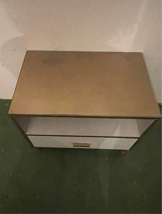 Mesa auxiliar cristal y metal dorada, y mesa tve
