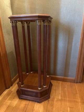 Elegante mesa auxiliar alta con un diseño clásico. - Fabricada en madera de alta calidad. - Color marrón. La madera esta muy bien cuidada y el diseño es fino y elegante. Puede servir para varias funciones. - Esta en muy buen estado. Se vende por mudanza.