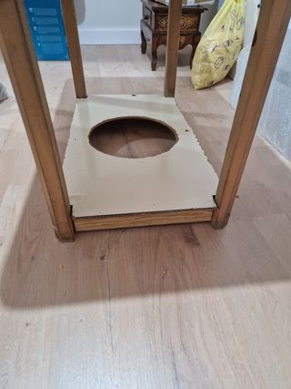 Mesa de camilla con un diseño moderno y funcional. - Tablero redondo. - Base circular con hueco central. - Solo venta en persona