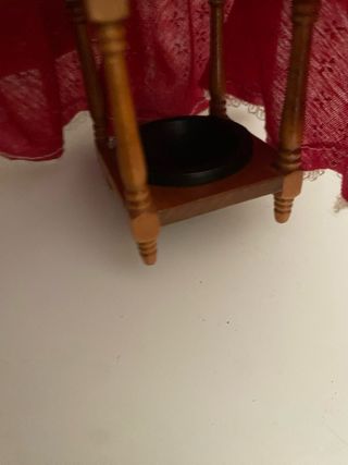 Mesa camilla redonda con un diseño clásico y elegante. - Cubierta de tela con encaje. - Base de tela blanca.