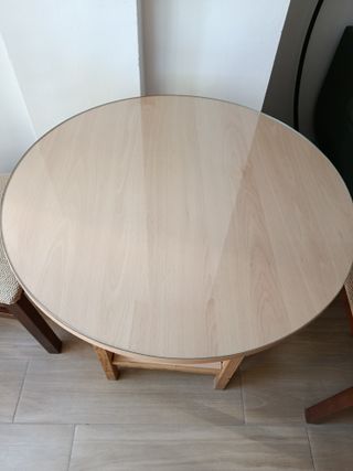 Tapa de cristal para mesa de camilla, en buen estado. Ideal para proteger y dar un acabado elegante a tu mesa. - Forma redonda. - Diámetro 80 cm - Grosor [insertar grosor si se conoce].