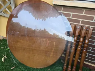 Mesa camilla grande redonda con sobre de cristal. - Estructura de madera - Diseño elegante y funcional. -Cristal de 6mm -Solo venta en persona