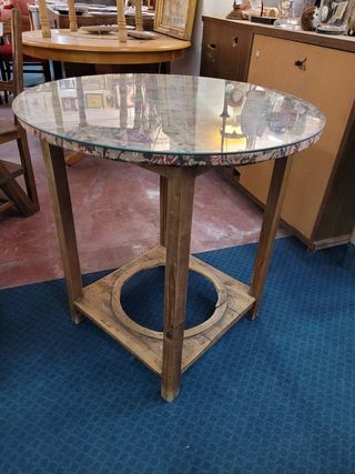 ✅ Ref. T50714 Mesa camilla con cristal incorporado fabricada en madera de buena calidad de color marrón. Se trata de una mesa camilla que cuenta con una base cuadrada con un agujero redondo y tiene una superficie redonda grande con un cristal grueso encima. Es una mesa perfecta para tenerla en un salón comedor. Como se puede observar en las fotografías se encuentra en buenas condiciones. 📐 Medidas (diámetro x alto): 74x76cm. Financia tus compras de forma inmediata. Visita nuestra web Cardiffstore o nuestra tienda en Torrellano (C/La Magrana); Llámanos o envíanos un WhatsApp al número de nuestro perfil. Envíos a toda España.
