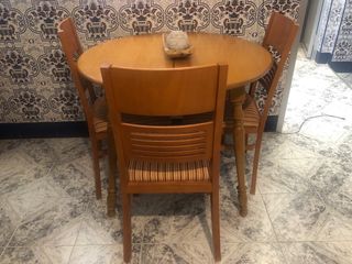 4 sillas y mesa de comedor, en perfecto estado. Regalo el cristal y falda de camilla hecha a medida.