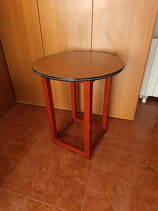 Mesa auxiliar de madera, ideal para espacios reducidos. Es una mesa de forma redonda con un diseño sencillo y elegante. Mide: 51,5cm de diámetro x 59 cm alto. - Perfecta como mesita de noche o auxiliar en el salón. - Estructura robusta y estable. - Acabado en color marrón.