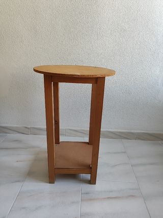 Mesa pequeña auxiliar. Sirve de mesita de noche. 40cm de diámetro. 60 cm de alto