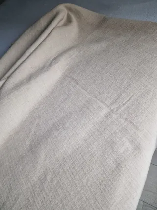 6. 45 metros de tela de tapicería en tono beige, con una textura sutil que aporta calidez a cualquier espacio. Están cortados en 2 trozos de 2.70m y 3.75 m por 1, 40 de ancho. Muy suave al tacto. Ideal para tapizar sillas o sofás, hacer enagüillas para mesa camilla... 4 € el metro - Tipo chenilla - Ideal para proyectos de decoración.