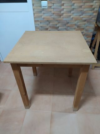 Mesa de comedor de madera maciza que sirve tanto para el invierno como para el verano. Se regala el cristal pero no la faldilla ni los tapetes. Medidas 120 cm por 80 cm y 80 cm de alto. Precio de la ropa de camilla 30€.