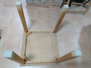Mesa de camilla de madera en buen estado. Es perfecta para colocar una camilla o como mesita auxiliar. - Estructura sencilla y resistente. - Superficie lisa y limpia.