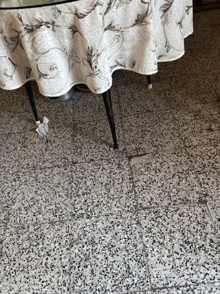 Tapete de mesa camilla de estilo vintage, con un bonito diseño de encaje. Tapete decorativo para mesa camilla. Mesa redonda. Mide unos 140 cm de diámetro. Muy buen estado. Tiene dos pequeñas manchitas que no se notan, si no, estaría perfecto. Sin enganchones. Tipo ganchillo, pero no es. Muy buena calidad - Tejido de buena calidad. - Diseño semicircular con borde festoneado. - Patrón floral y ornamental detallado.