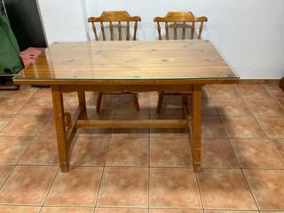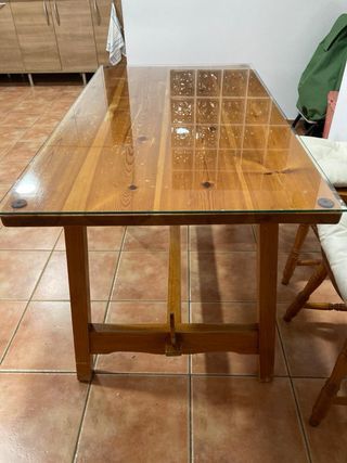 Mesa de madera con cristal