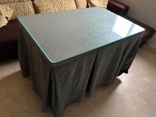 Mesa camilla con ropa y cristal