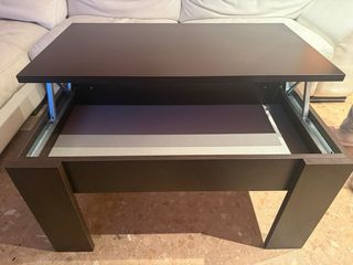 Mesa auxiliar de comedor con un diseño moderno y elegante. - Acabado en tono oscuro. - Patas robustas para mayor estabilidad. - Apertura para almacenaje y doble altura - Urge venta por traslado laboral al extranjero - Recogida en Benadresa