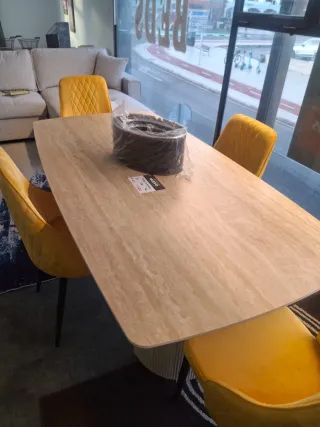 Elegante mesa de comedor con un diseño contemporáneo que aportará estilo a tu hogar. Su base le da un toque único. oferta liquidacion pago contrarrembolso - Acabado en piedra y madera. -