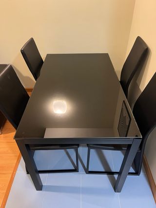 Mesa de comedor de Ikea en color negro. - Diseño moderno y elegante. - Patas robustas para mayor estabilidad. - Superficie lisa y fácil de limpiar.