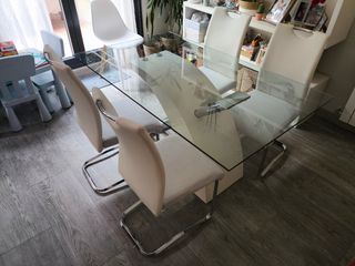 Mesa cristal diseño y 4 sillas comedor