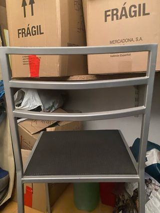 Mesa moderna con superficie de cristal templado negro y estructura de metal gris mate. Estructura robusta. (No es una mesa de cocina ligera) - Encimera de cristal negro. - Patas de metal en color gris mate. Extensible de 135 cm a 185 cm. Mesa: 200€ Sillas en piel sintética y acero cromado, con respaldo en madera en la parte trasera. Las sillas tienen algún roce muy discreto. 4 sillas: 120 € Mesa + sillas: 280€