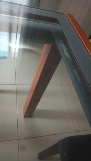 Mesa que se abre y se cierra de cristal, muy aceptable, tendrás q recogerla y el precio es totalmente negociable