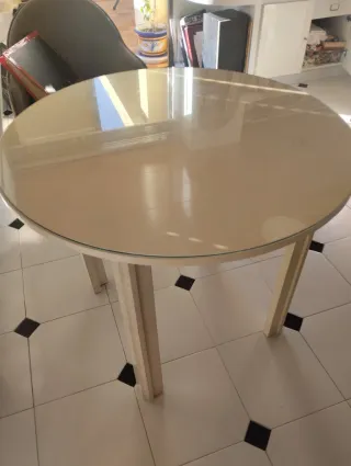 Elegante mesa redonda con un diámetro de 90 cm.extensible a 1'20m - Tablero de cristal si se desea - Base de madera - Recoger en Benidorm