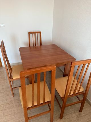 Conjunto comedor todo de madera noble la mesa es extensible 4 sillas madera noble Tfno 661804085