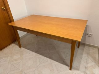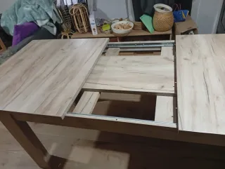 Mesa de comedor con un diseño moderno y funcional. Perfecta para reuniones familiares o con amigos. Buen estado general, es de segunda mano... 95x175 (+80 cm) Sin sillas. Tambien vendo mueble bajo mismo tipo 50€ - Acabado en madera natural. - Diseño extensible para mayor versatilidad.
