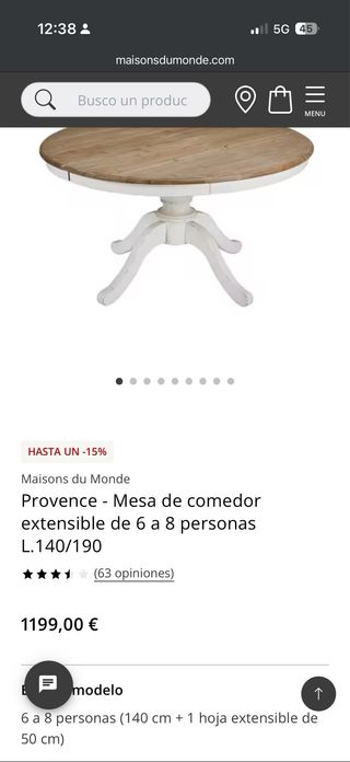 Precio original 600€ Medida normal 140, extendida 190cm SILLAS NO INCLUIDAS