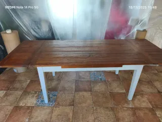 🪑🪵 Mesa Extensible de Madera + 4 Sillas | Muy Cuidada Vendo mesa de comedor extensible de madera maciza con 4 sillas a juego, exactamente las que aparecen en las fotos. Es un conjunto clásico, robusto y en muy buen estado, ideal para salón, comedor o casa de campo. ✔️ Mesa extensible: perfecta para adaptarse al espacio y reuniones ✔️ Madera maciza, sólida y de gran calidad ✔️ 4 sillas incluidas, cómodas y en buen estado ✔️ Estilo tradicional, muy estable y resistente La mesa abre fácilmente y ofrece más capacidad cuando se necesita. 📍 Recogida en mano Ideal si buscas un conjunto duradero y elegante a buen precio