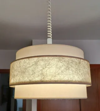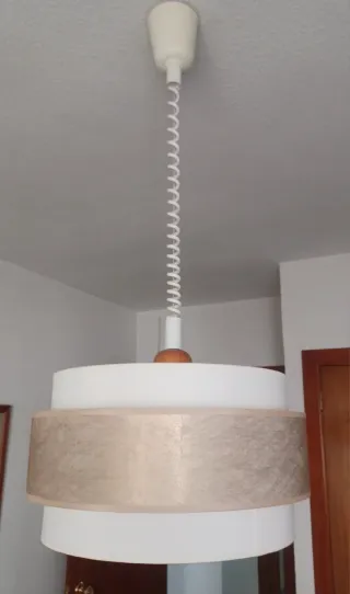 Lámpara colgante pensada para su uso sobre una mesa de comedor, donde proporciona una luz acogedora. La percepción de la luz directa depende de la altura a la que se coloque la pantalla. Cuanto más baja esté, menos directa será la luz percibida por los presentes. La altura se puede ajustar de forma rápida y sencilla, basta con tirar brevemente de la barra situada en el extremo inferior de la pantalla. No hago envíos. Solo venta en persona. A recoger en la zona del Jardin de la Reina/ Parque de las Ciencias. Granada.