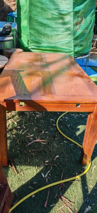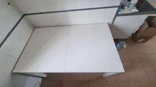 Mesa comedor extensible en buen estado de conservación. Alto: 76,5 Ancho: 90 Largo sin abrir: 1,40 Largo abierta: 2,50 Muy fácil de montar.