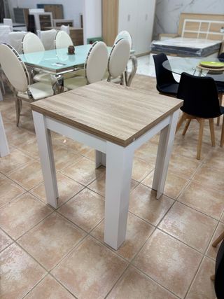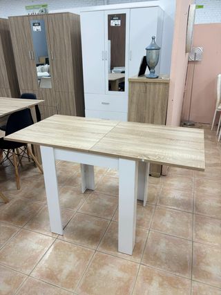 680*558*196 ☎️ Mesa: 75€ Mesa 4 sillas: 131€ Mesa de comedor nueva a estrenar, moderna y funcional, en acabado madera roble claro. Perfecta para hogares que necesitan ahorrar espacio sin renunciar a estilo. Es extensible, por lo que puedes usarla cerrada para el día a día o abrirla para recibir a invitados. Muy estable y de excelente calidad. 📏 Medidas: Largo: 67cm (cerrado) y 134 cm (abierto) Ancho: 67 cm Alto: 78 cm