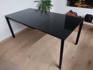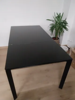 Mesa negra brillante, para comedor. es extensible, aglomerado laminado. se podrían agregar las sillas por 200€ son 6
