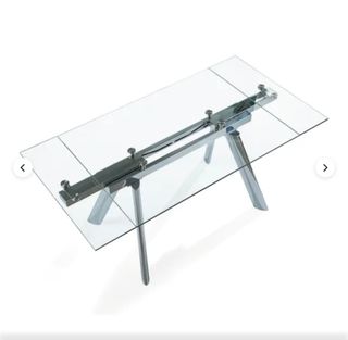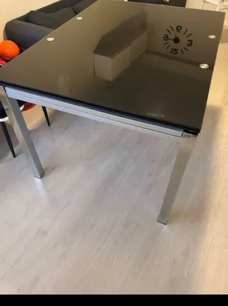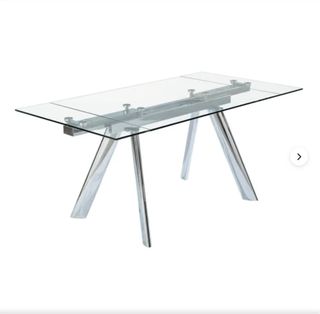 Vendo con urgenciauna mesa de cristal extensible de un diseño exclusivo para el comedor. Las patas y el marco están echas de acero inoxidable plateado. - Mesa con estructura metálica y sobre de cristal. - Diseño moderno y elegante.