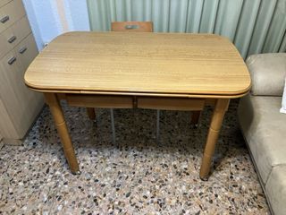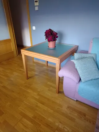 Mesa de madera en buenas condiciones. Cerrada mide 100x100 y se abre en 100x200. Precio negociable