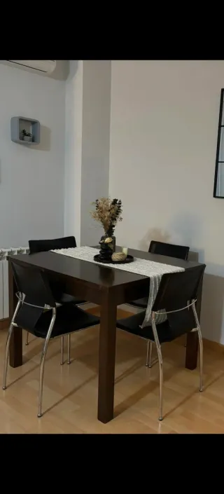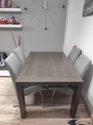 ☎️680*558*196 Mesa de comedor extensible de madera nueva a estrenar, ideal para salón o comedor. Diseño moderno y resistente, perfecta para uso diario y reuniones familiares. Gracias a su sistema extensible, se adapta fácilmente a más comensales. Disponible con o sin sillas, según necesidad. 💰 Precio: 174 € con sillas 90 € sin sillas 📐 Medidas: Largo: 138 cm (cerrada) / 178 cm (extendida) Ancho: 80 cm Alto: 79 cm ✔️ Producto nuevo ✔️ Mesa extensible práctica y funcional ✔️ Estilo moderno en madera ✔️ Ideal para pisos y salones
