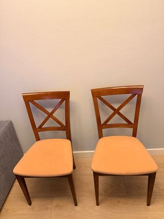 Conjunto de mesa extensible y seis sillas. Hay que ir a buscarlas a un pueblo 60km de zgz - Mesa de madera con superficie ovalada. - Sillas con asientos tapizados.